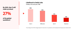 To put things into perspective, almost half of all Gen Z employees intend to switch jobs within the next year. It’s also worth being aware that by 2025, Gen Z is expected to make up more than a quarter of the entire workforce. Being aware of what they want from an employer may put you in a position to prove your company is worth staying at.