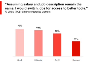 Many of the younger workers out there feel as if they should have better tools that allow them to do their job more efficiently. Both millennials and Gen Z have grown up around technology and understand its importance for both work and play.